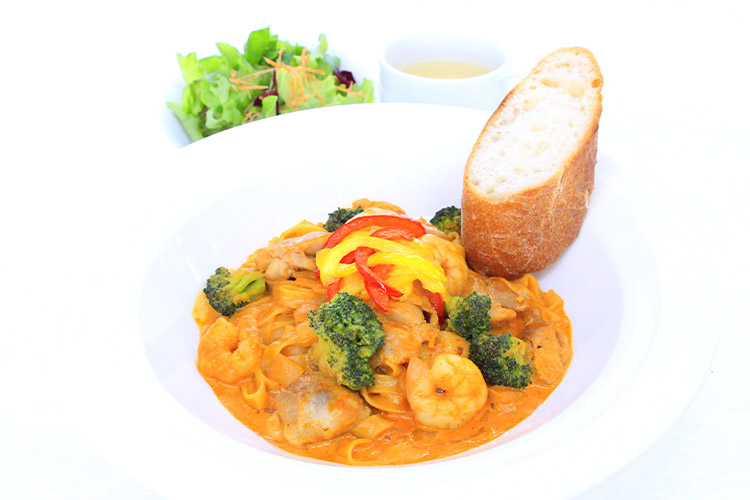 海老のトマトクリームパスタ~バケット添え~